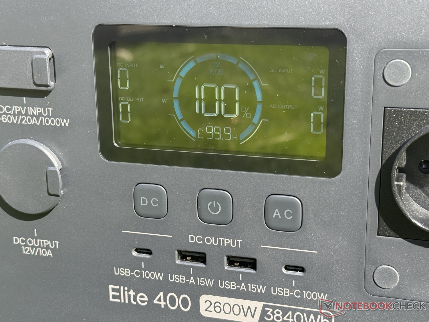 Nel nostro test pratico, abbiamo scaricato l'Elite 400 con un assorbimento continuo di corrente alternata di circa 250 W. La stazione elettrica ha fornito un totale di circa 3.130 Wh, pari a poco meno dell'82 percento della capacità della batteria. In termini di efficienza, è in ritardo rispetto al modello Elite 300 e di altri concorrenti. Se il carico di uscita viene aumentato a 1.800 W, ad esempio, l'efficienza aumenta fino a un buon 93 percento. Il lato positivo è che l'Elite 400 è stato per lo più molto silenzioso durante il periodo del test.