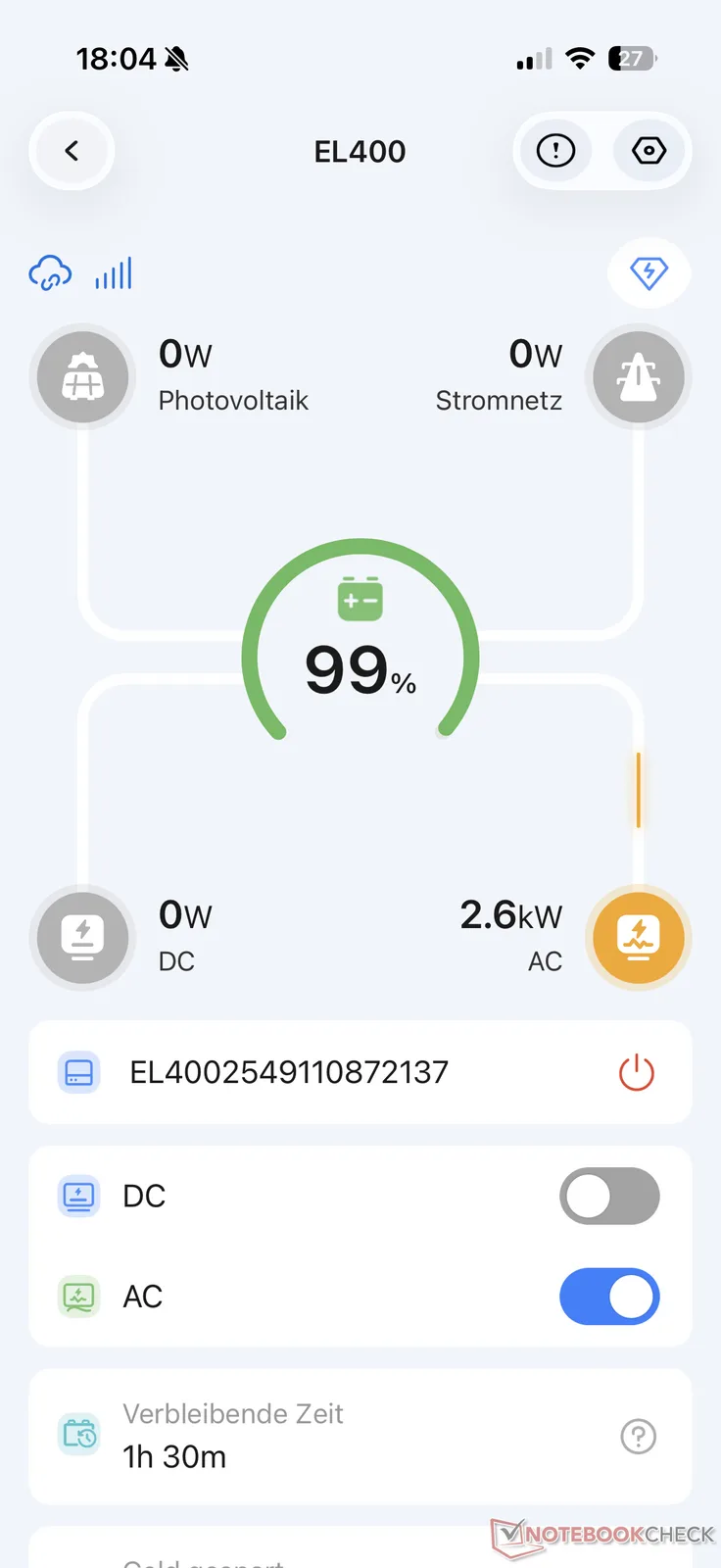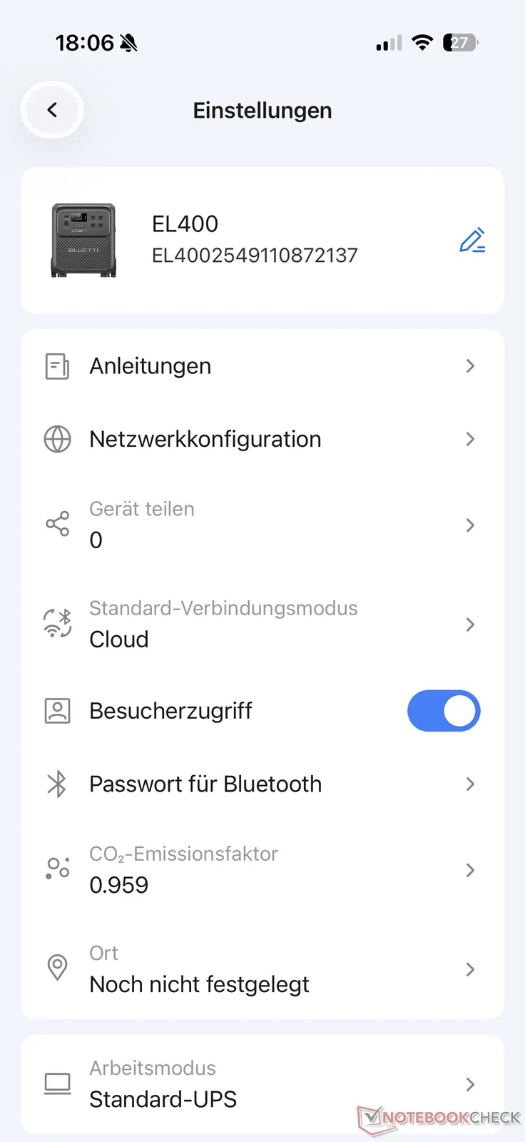 Nella nostra Recensione di Elite 300 abbiamo recentemente parlato dell'applicazione Bluetti, disponibile per iOS e Android. Pertanto, saremo brevi a questo punto. La connessione tra la centrale elettrica e l'app tramite Bluetooth e Wi-Fi ha funzionato senza problemi nel test di Bluetti Elite 400.
