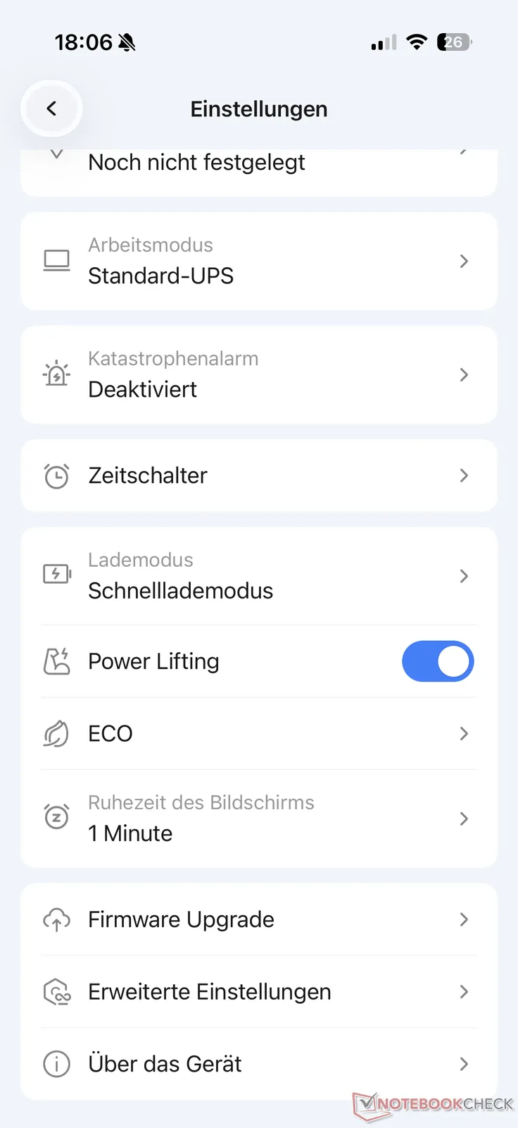 Una volta impostata, l'app mostra i flussi di energia attuali e lo stato della batteria, proprio come il display della stazione elettrica. Sono disponibili anche una serie di impostazioni di base, ad esempio per attivare le modalità di sollevamento dell'energia e di ricarica rapida. Può anche effettuare regolazioni della funzione UPS, attivare la modalità economica ECO o installare aggiornamenti del firmware (se disponibili).