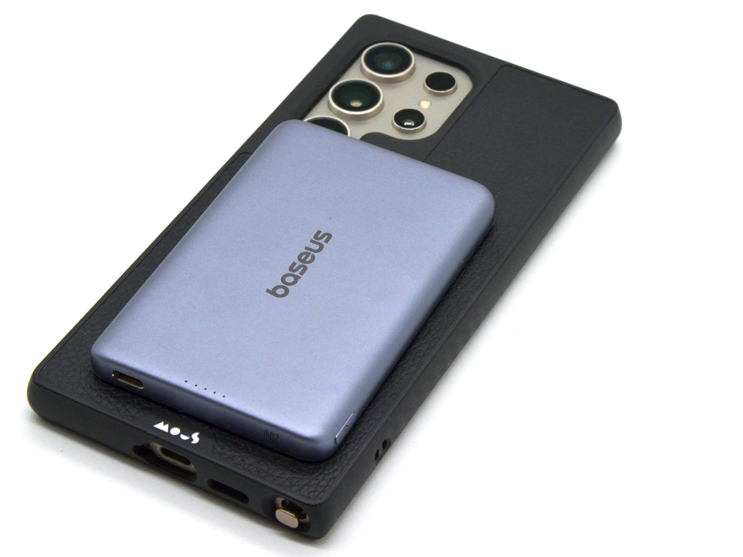 Abbiamo ricaricato una serie di dispositivi con Baseus PicoGo AM52. Il power bank supporta Qi2.2, ma ricarica in modalità wireless anche i dispositivi che supportano solo Qi2, come il Samsung Galaxy S24 Ultra. Con una custodia appropriata, PicoGo AM52 si adatta in modo sicuro anche ai dispositivi che non supportano MagSafe o PixelSnap.