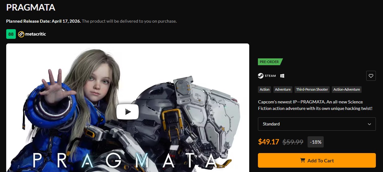 Di solito le nuove uscite non vengono scontate così presto. Nella maggior parte dei casi, i giocatori devono aspettare settimane o addirittura mesi prima di vedere una riduzione del prezzo. Tuttavia, non è questo il caso. Su Fanatical, Pragmata è già disponibile con uno sconto del 18%, che ha fatto scendere il prezzo da 59,99 dollari a 49,17 dollari.