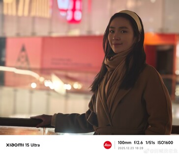 Nei due scatti di ritratto qui sotto, la fotocamera principale da 23 mm mostra principalmente la maggiore gamma dinamica del nuovo sensore Lofic. Nonostante un'apertura minore a una lunghezza focale di 100 mm, il ritratto con lo zoom da 100 mm è significativamente più luminoso, anche se la velocità dell'otturatore e i valori ISO sono molto diversi. Detto questo, preferiamo il ritratto di Xiaomi 15 Ultra nel secondo esempio, perché il viso appare molto più naturale. La versione Xiaomi 17 Ultra è piena di artefatti e un po' sfocata.