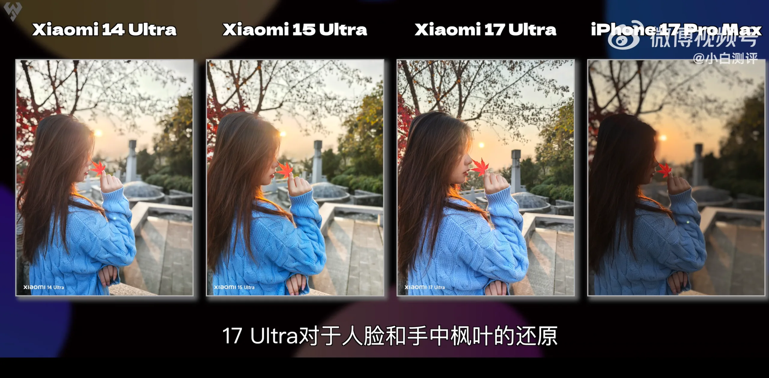 Questo scatto si trova anche nel video di recensione di Xiaobai, che contiene un confronto con tre predecessori dello Xiaomi 17 Ultra e con l'iPhone 17 Pro. Illustra certamente i progressi di queste generazioni di smartphone.