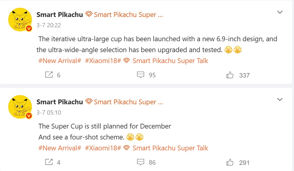 In Cina, il leaker Smart Pikachu ha commentato la serie Xiaomi 18 qualche giorno fa e ha lasciato intendere che possiamo aspettarci di nuovo lo Xiaomi 18 Ultra a dicembre, forse con una fotocamera quadrupla anziché tripla. Si parla anche di un nuovo design da 6,9 pollici con una nuova fotocamera ultra-grandangolare, anche se questo suggerimento potrebbe riferirsi allo Xiaomi 18 Pro Max