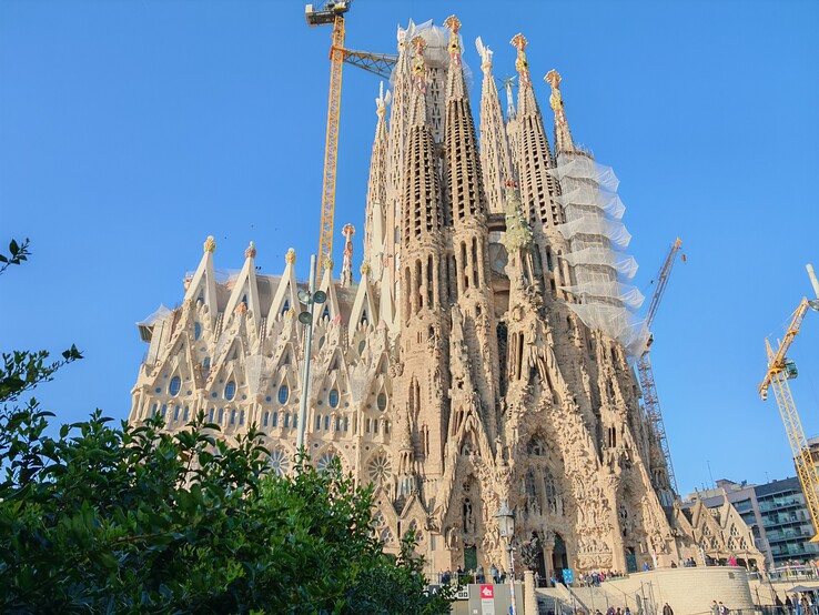 Ora ci avviciniamo alla Sagrada Familia. Innanzitutto alcuni fatti: La chiesa è in costruzione dal 1882, ma non è ancora stata completata; attualmente si prevede che sarà terminata nel 2033.