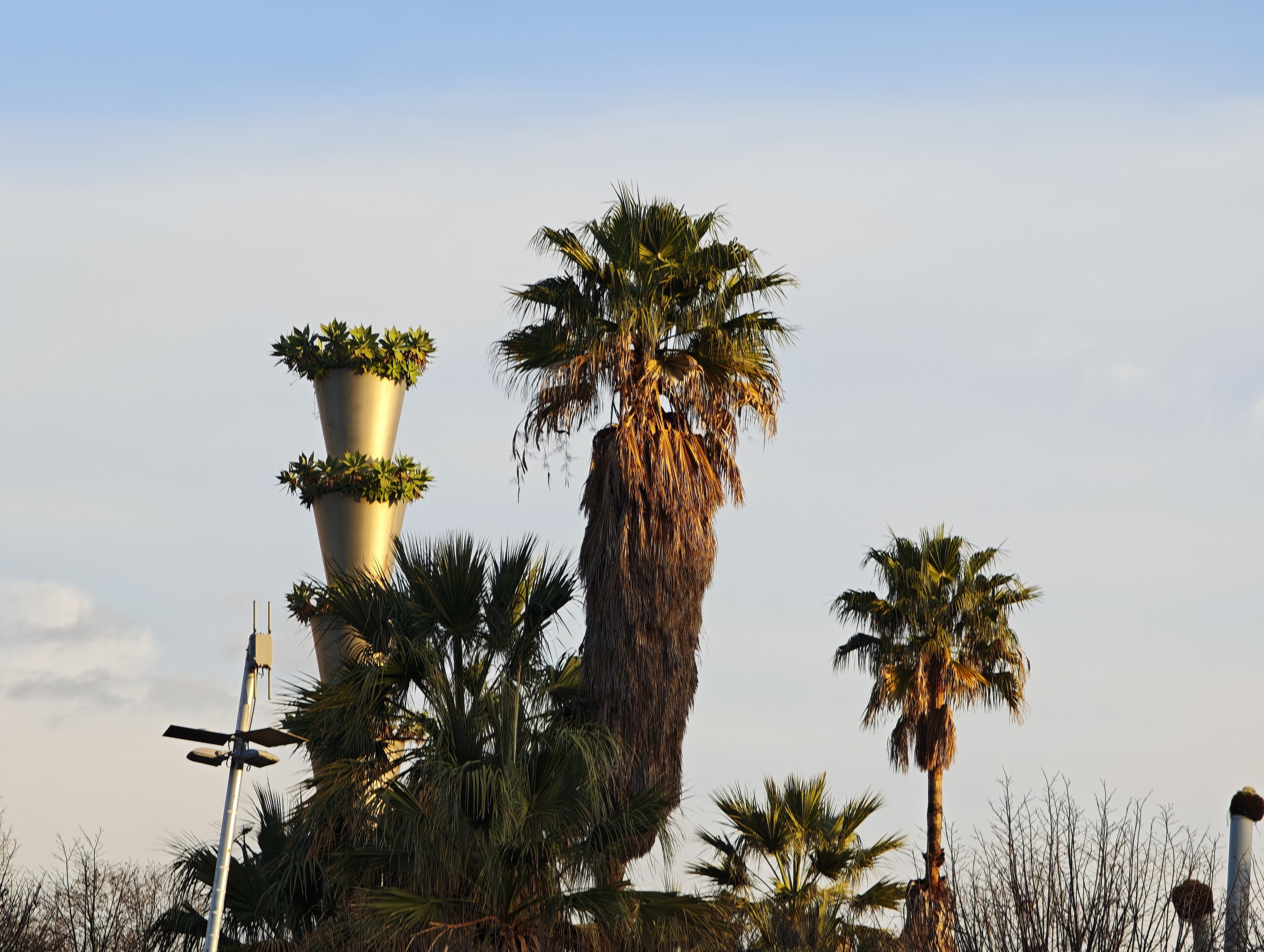 Come molte grandi strade di Barcellona, Avenida Diagonal offre un'ampia passeggiata per pedoni e ciclisti al centro, fiancheggiata da platani. Ancora una volta, lo smartphone Xiaomi offre l'immagine più nitida nei dettagli, con entrambi gli smartphone che offrono una buona visione del braccio della gru sulla destra con i suoi sottili puntelli di sostegno.