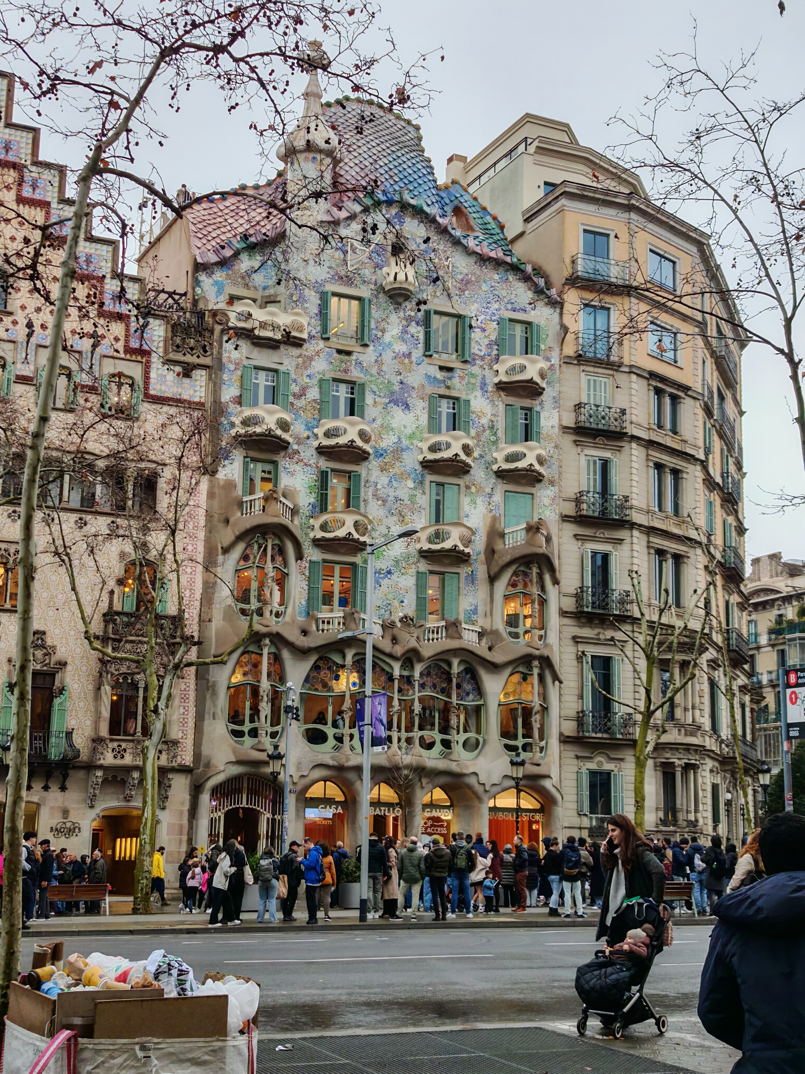 Dopo un breve tour degli interni, passiamo al prossimo highlight: la Casa Batlló, un'imponente casa di città, anch'essa progettata da Antoni Gaudí. Il tema dell'oceano è stato il suo leitmotiv, facendo sembrare la scala un mondo sottomarino.