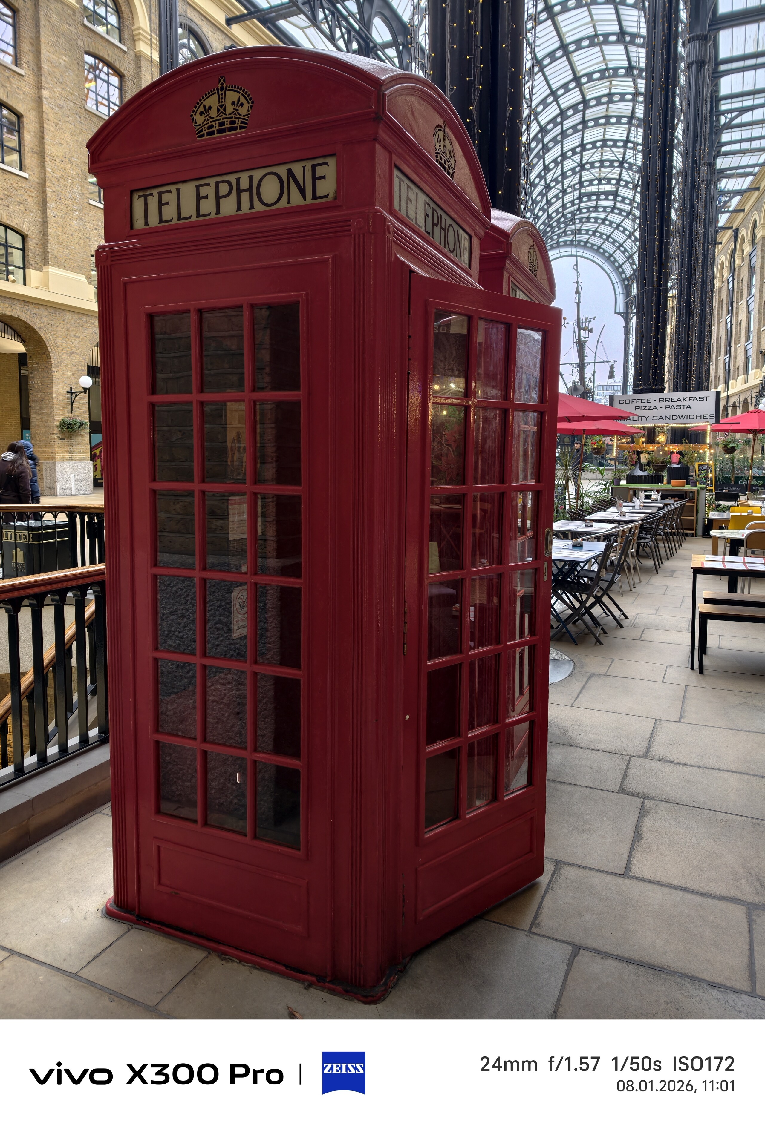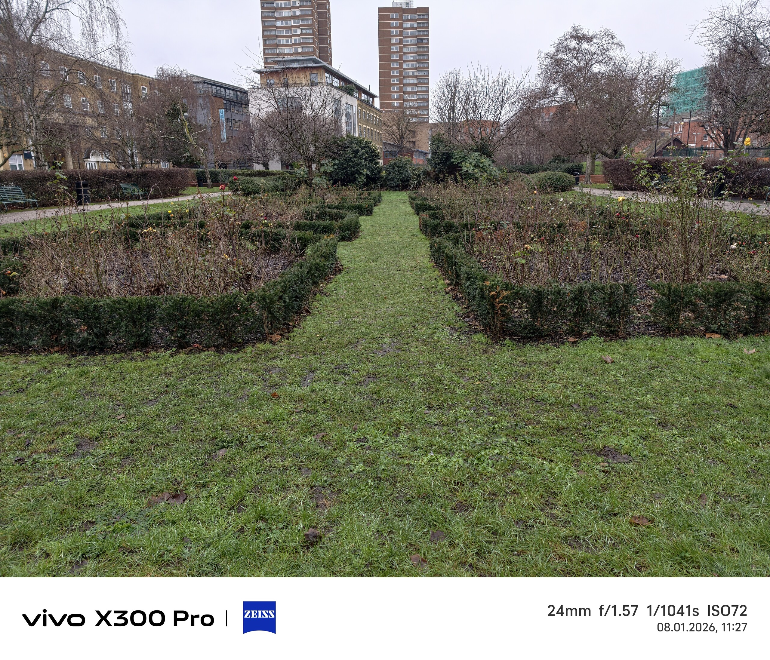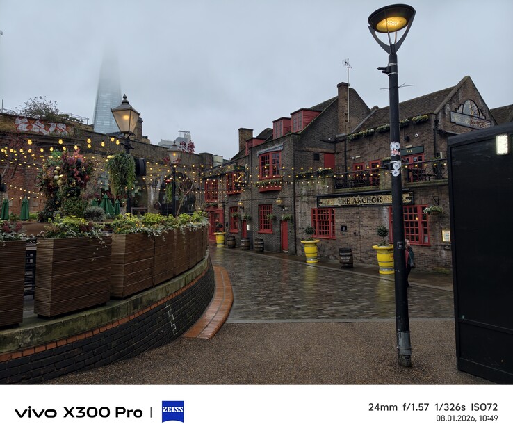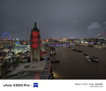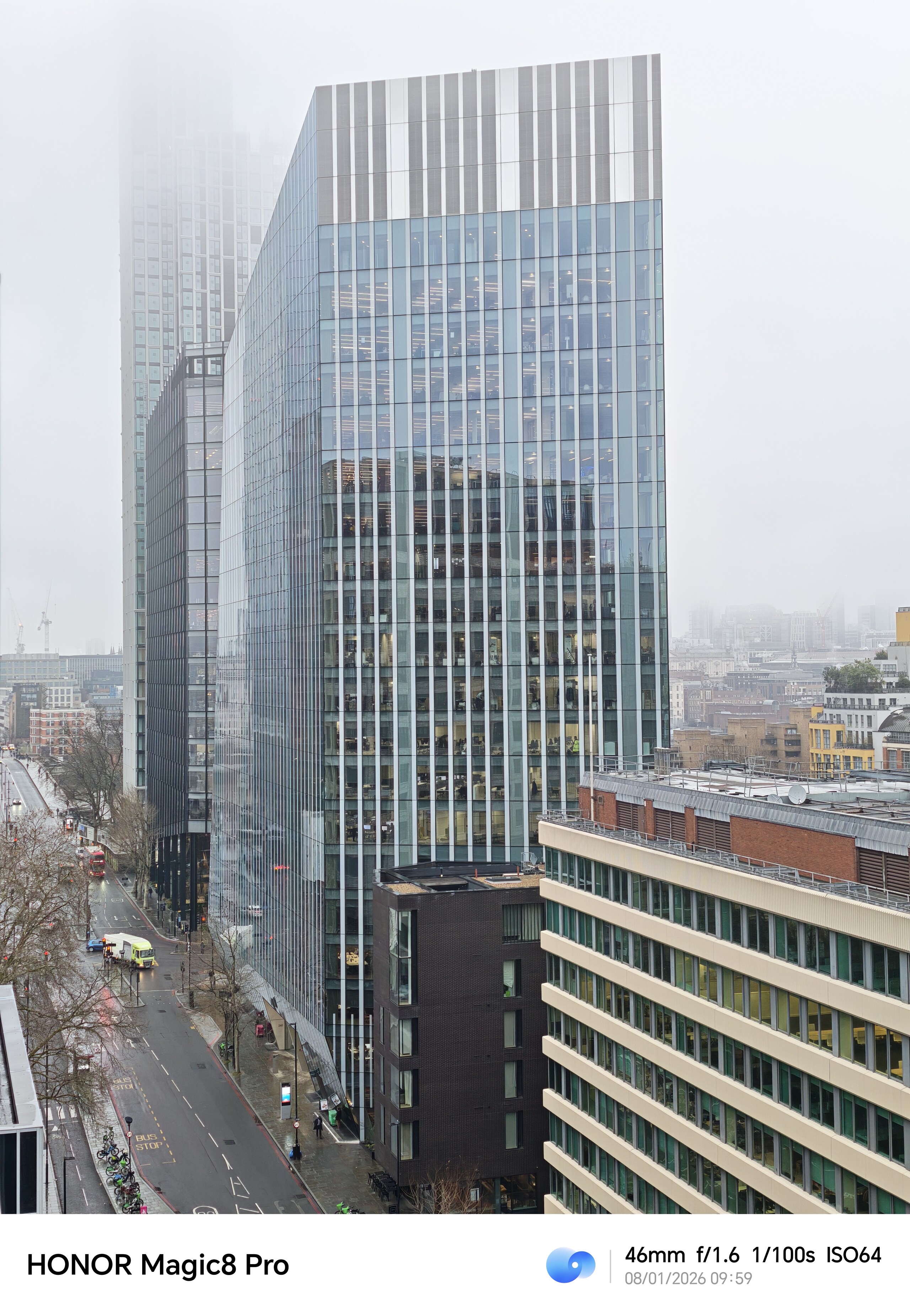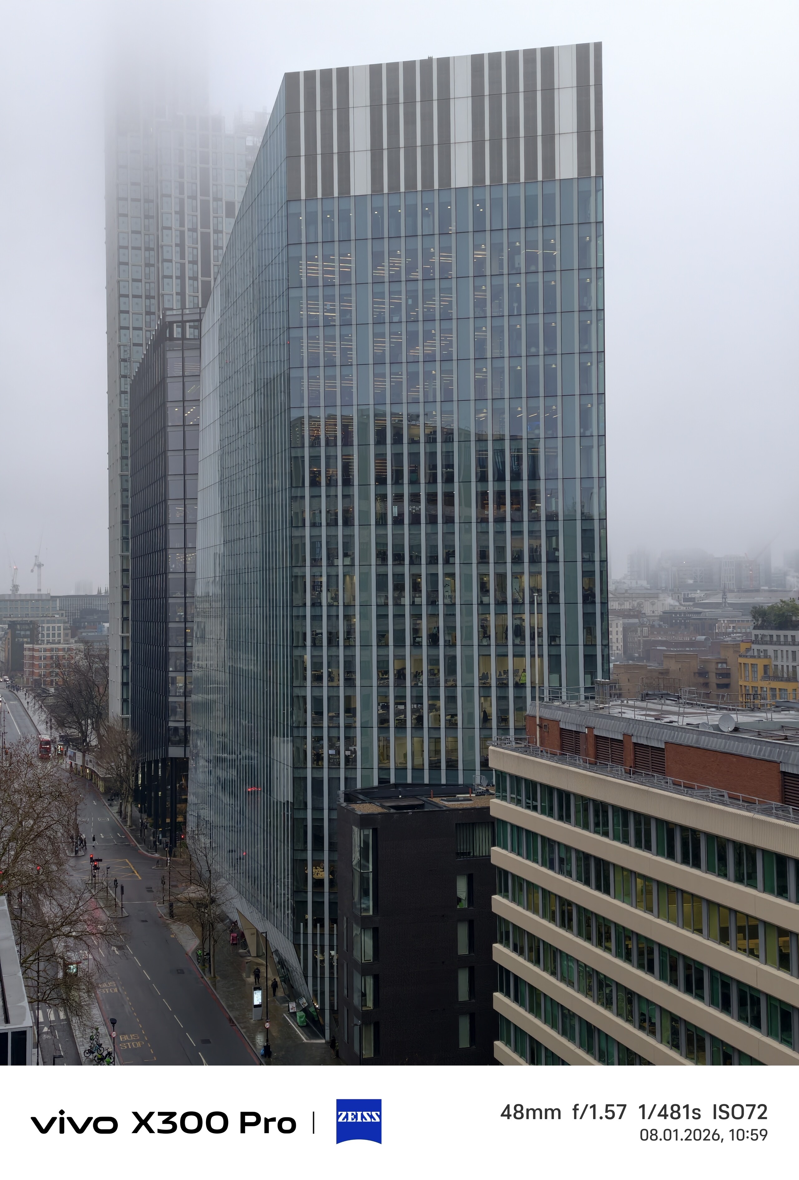 Il tempo a Londra era nuvoloso, cosa che l'X300 Pro cattura leggermente meglio, in quanto le immagini non sono generalmente schiarite più di tanto. Tuttavia, avremmo preferito che fosse un po' più luminoso. Honor adotta l'approccio opposto e schiarisce l'immagine in modo significativo per tutto il tempo, per suggerire una maggiore gamma dinamica. In questo caso, avremmo preferito uno scatto leggermente più scuro. Purtroppo, la compensazione dell'esposizione può essere regolata solo in modalità Pro su entrambi gli smartphone, e anche questa non viene salvata in modo permanente.