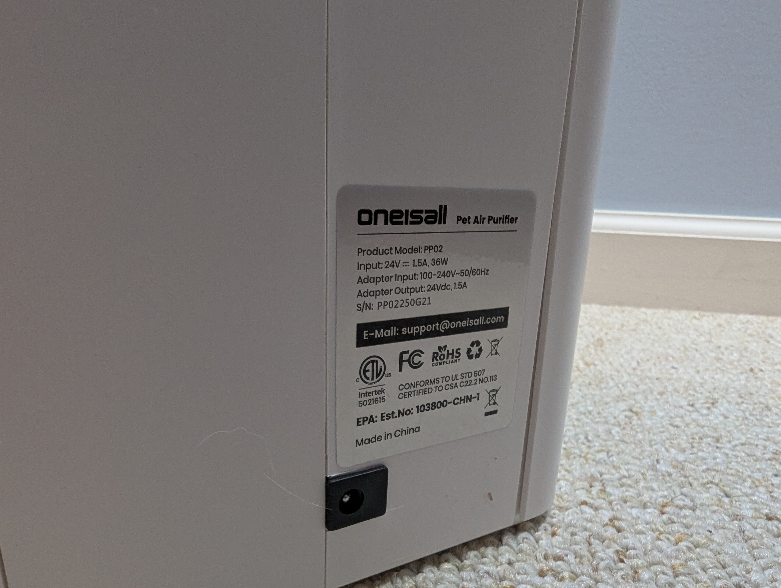 A prima vista, il Levoit Core 300-P sembra essere il più veloce con 17 secondi. Tuttavia, il Core 300-P è un'unità più piccola, con un percorso dell'aria più breve e un singolo filtro, che consente un ciclo naturalmente più veloce in una camera piccola, rendendo le prestazioni di 24 secondi di Oneisall PP02 probabilmente più impressionanti. Ha ottenuto questo tempo forzando l'aria attraverso una resistenza doppia rispetto a quella prodotta da due filtri HEPA H13 completi e due banchi di carbone attivo. È molto più difficile spostare rapidamente l'aria attraverso una tale quantità di materiale filtrante. Il fatto che Oneisall abbia superato il Core 300-P di soli 7 secondi dimostra la funzionalità del design e le prestazioni del motore.