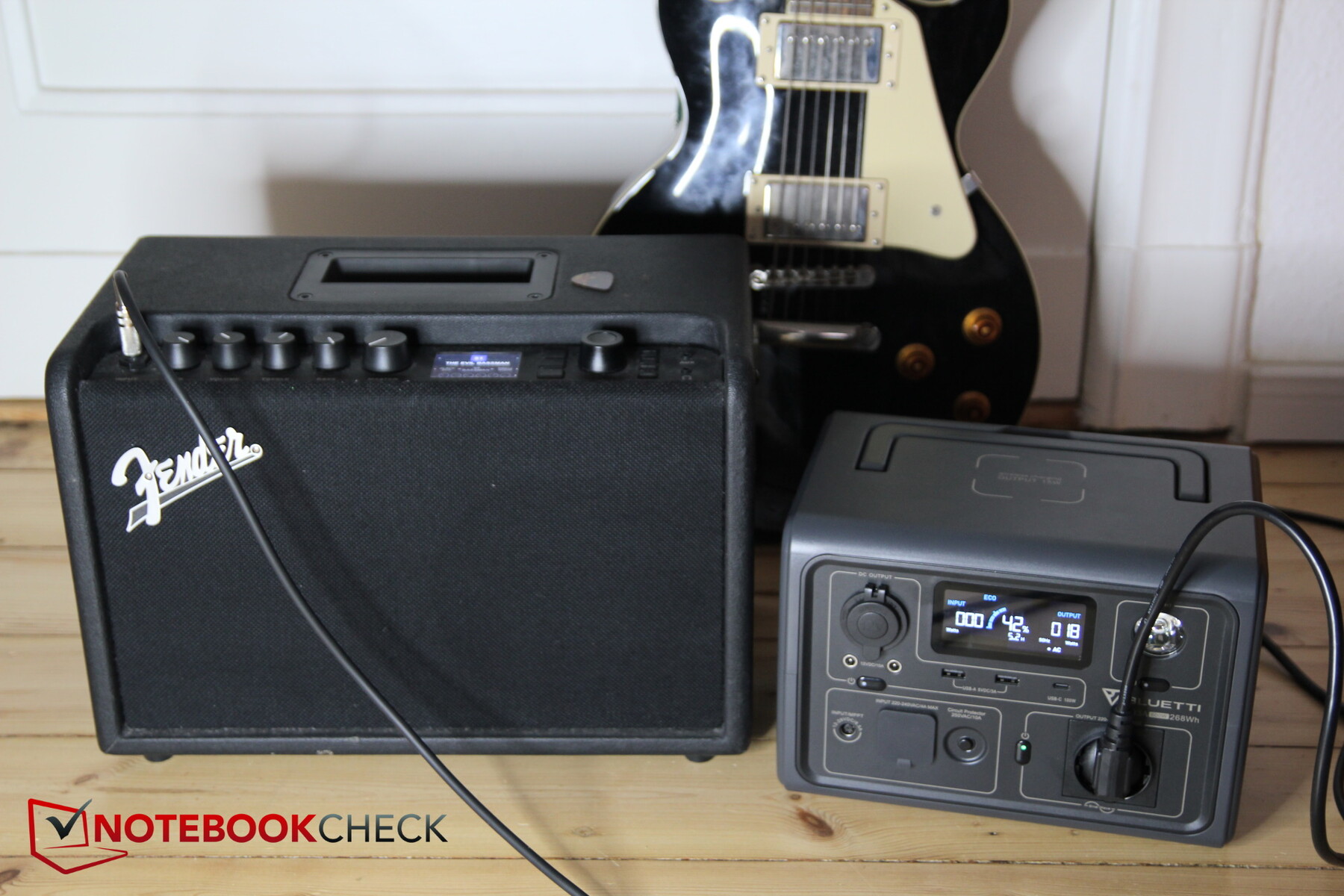 Le cose sono andate meglio con il mio piccolo amplificatore per chitarra Fender. Secondo il display dell'EB3A, utilizza solo 20 W al massimo. Quindi i musicisti di strada e gli artisti possono usare la piccola stazione di alimentazione per fornire energia in strada. Anche il nostro router di prova ha funzionato senza problemi.