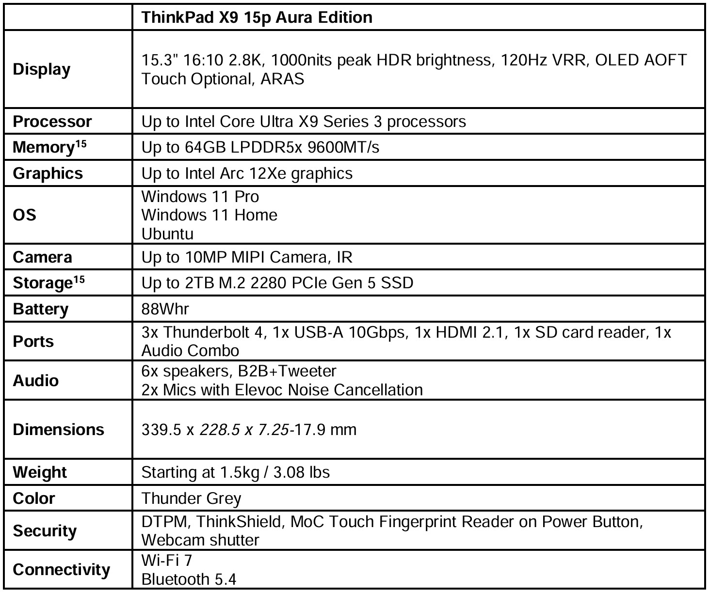 Lenovo ThinkPad X9-15p Aura Edition arriverà sul mercato a marzo 2026, con un prezzo di partenza di 1.999 dollari.