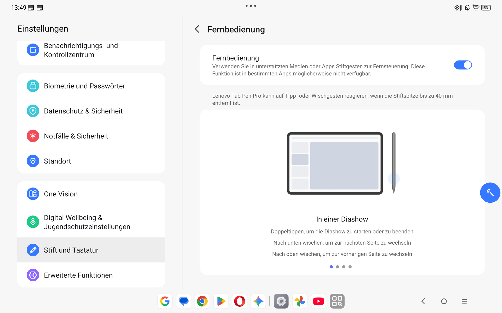 Lo Yoga Tab viene fornito con la Lenovo Tab Pen Pro e offre una serie di utili funzioni software per la penna interna.