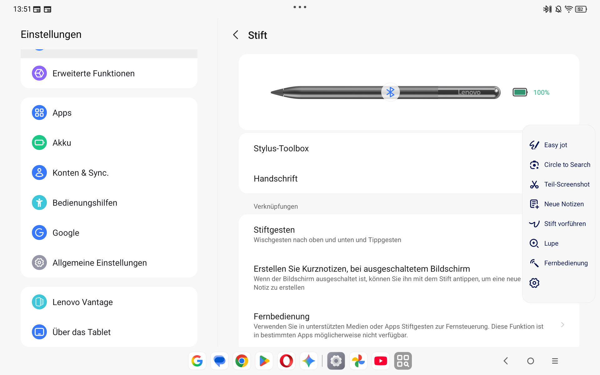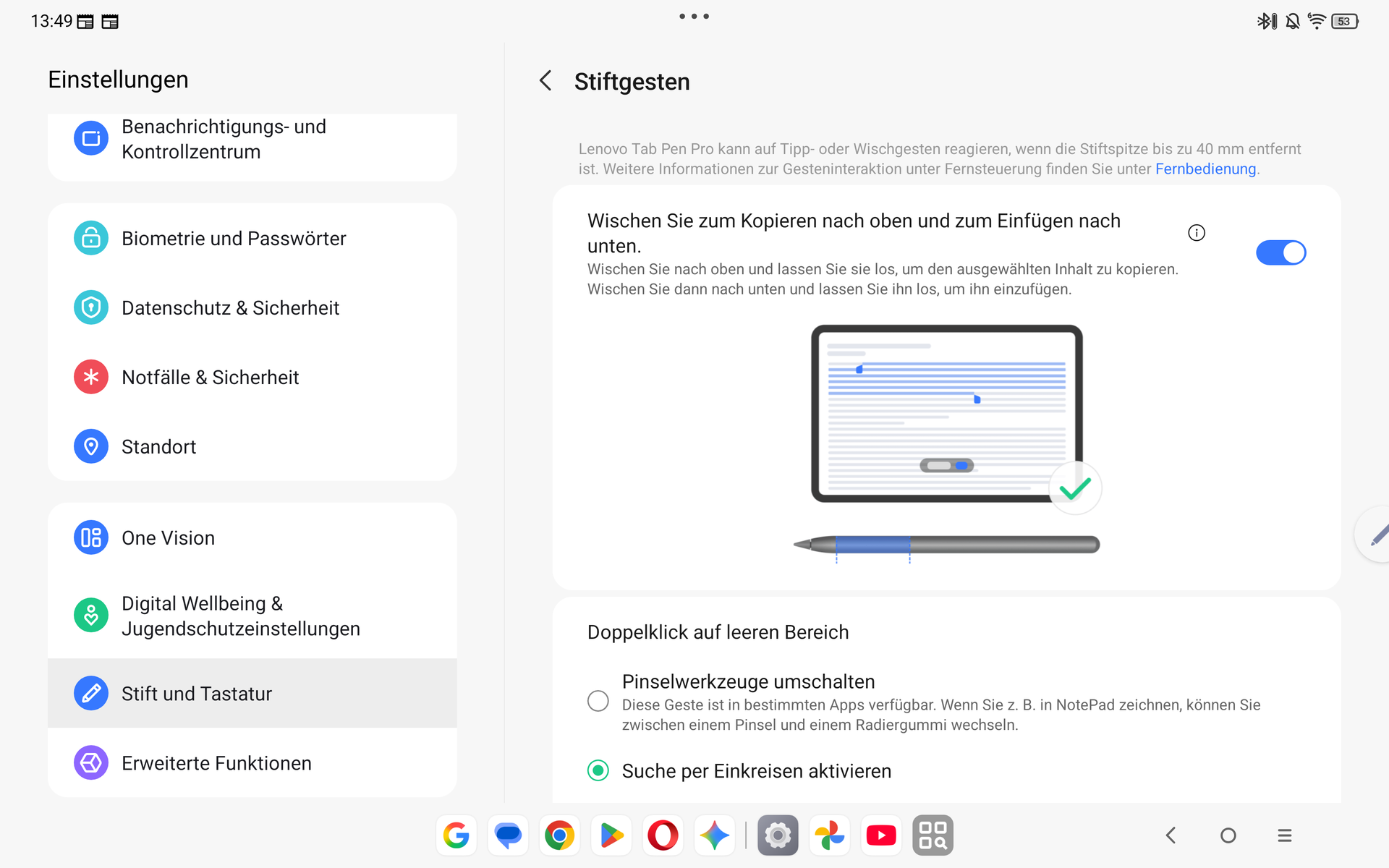 Oltre alle funzioni AI come Circle to Search, l'interfaccia ZUI17 offre anche molte opzioni per utilizzare la Lenovo Tab Pen Pro per la produttività. Con l'area sensibile al tocco nella parte anteriore della custodia della penna, è possibile utilizzare i gesti per selezionare la barra degli strumenti, ad esempio. Questo funziona in modo molto affidabile nell'uso quotidiano.