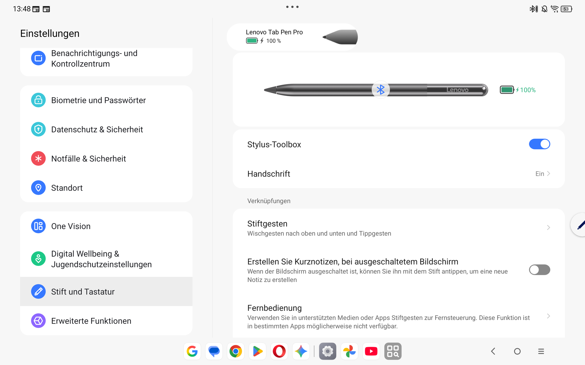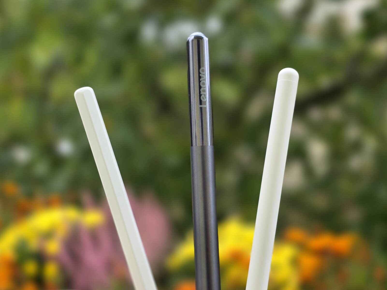 Nel confronto diretto con la nuova S Pen di Samsung, la Tab Pen Pro appare più spessa e con un peso di circa 18 grammi, la penna di Lenovo è significativamente più pesante. Questo fa sì che la sensazione in mano sia sensibilmente diversa. Quale dei due concetti sia migliore, tuttavia, rimane una questione di gusti. Entrambe le stilo hanno una sensazione di alta qualità e sono ben fatte.