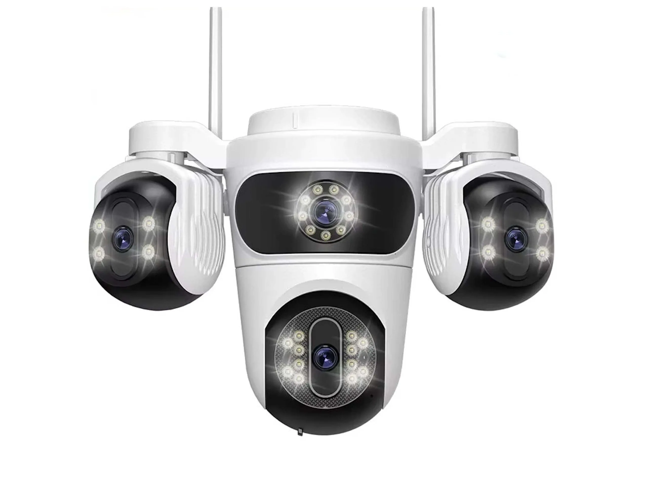 A prima vista, il WQQ890-XM-2 sembra addirittura includere quattro fotocamere. Tuttavia, la telecamera superiore al centro è solo un manichino. In ogni caso, questa telecamera di sicurezza ha una risoluzione di 1920 x 1080 pixel, il che significa che il WQQ890-XM-2 non produce immagini particolarmente nitide. Solo la telecamera inferiore può essere spostata in remoto, mentre le altre due telecamere devono essere regolate manualmente. Il dispositivo offre un rilevamento automatico delle persone basato sull'AI, in quanto la telecamera inferiore può seguire determinate persone.