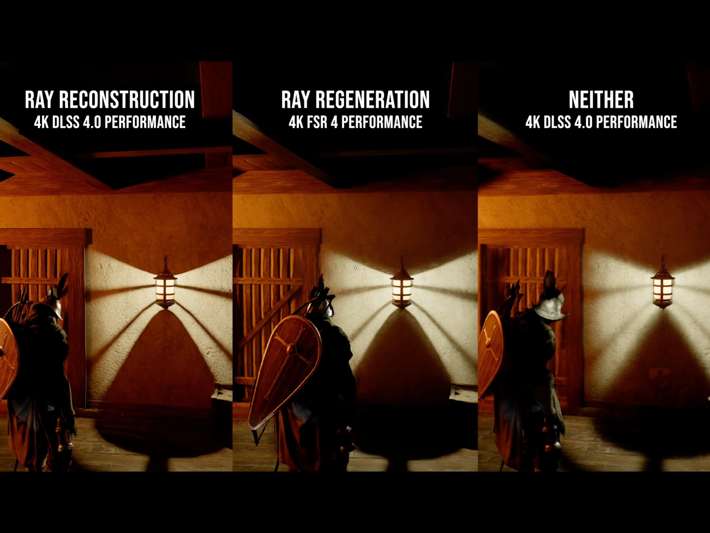 Hanno scoperto che l'aumento dell'illuminazione all'impostazione 'Max' peggiora il rumore, quindi si consiglia di impostare 'Cinematico' o 'Ultra'. È interessante notare che DLSS 4.0 funziona meglio di DLSS 4.5 nel ridurre il rumore. In alcuni casi, l'upscaling con DLSS introduce più rumore, poiché il conteggio dei campioni per l'illuminazione dipende dalla risoluzione di rendering e non dalla risoluzione di uscita, secondo Hardware Unboxed. È meglio eseguire il gioco a risoluzione nativa o quasi nativa utilizzando la modalità DLAA o DLSS Quality.