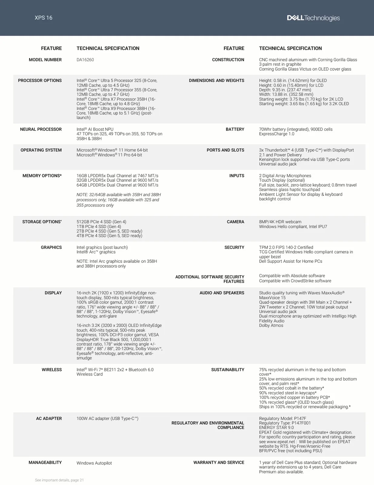Dell XPS 14 DA14260 e Dell XPS 16 DA16260: Prezzi e disponibilità