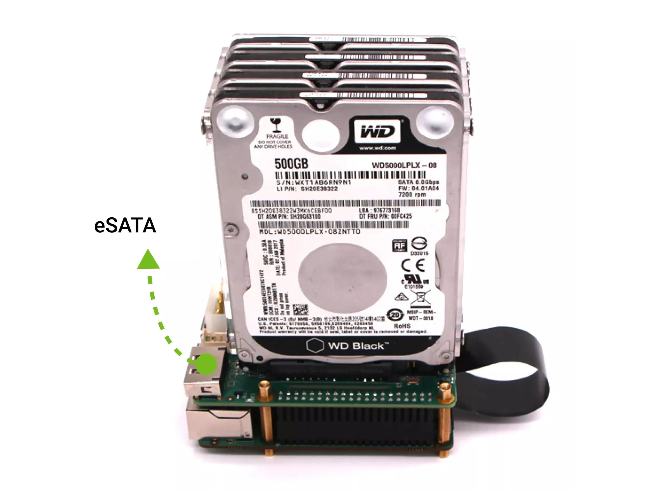 Radxa Penta SATA HAT è una di queste schede di espansione che, secondo il produttore, è compatibile con Raspberry Pi 5, Rock 5A, Rock 3C, Rock 4A e Rock 4B. Tecnicamente, si tratta di un sistema che trasforma le porte PCIe in porte SATA. Sono disponibili cinque porte SATA in cui è possibile inserire dischi rigidi da 2,5 pollici o 3,5 pollici. Secondo Radxa, è possibile utilizzare fino a 100 TB di spazio di archiviazione. È presente anche una porta eSATA. Con un alloggiamento appropriato, è possibile installare un NAS con la sola scheda, il Penta HAT e il computer a scheda singola, mentre le connessioni SATA e di alimentazione possono essere collegate anche via cavo.