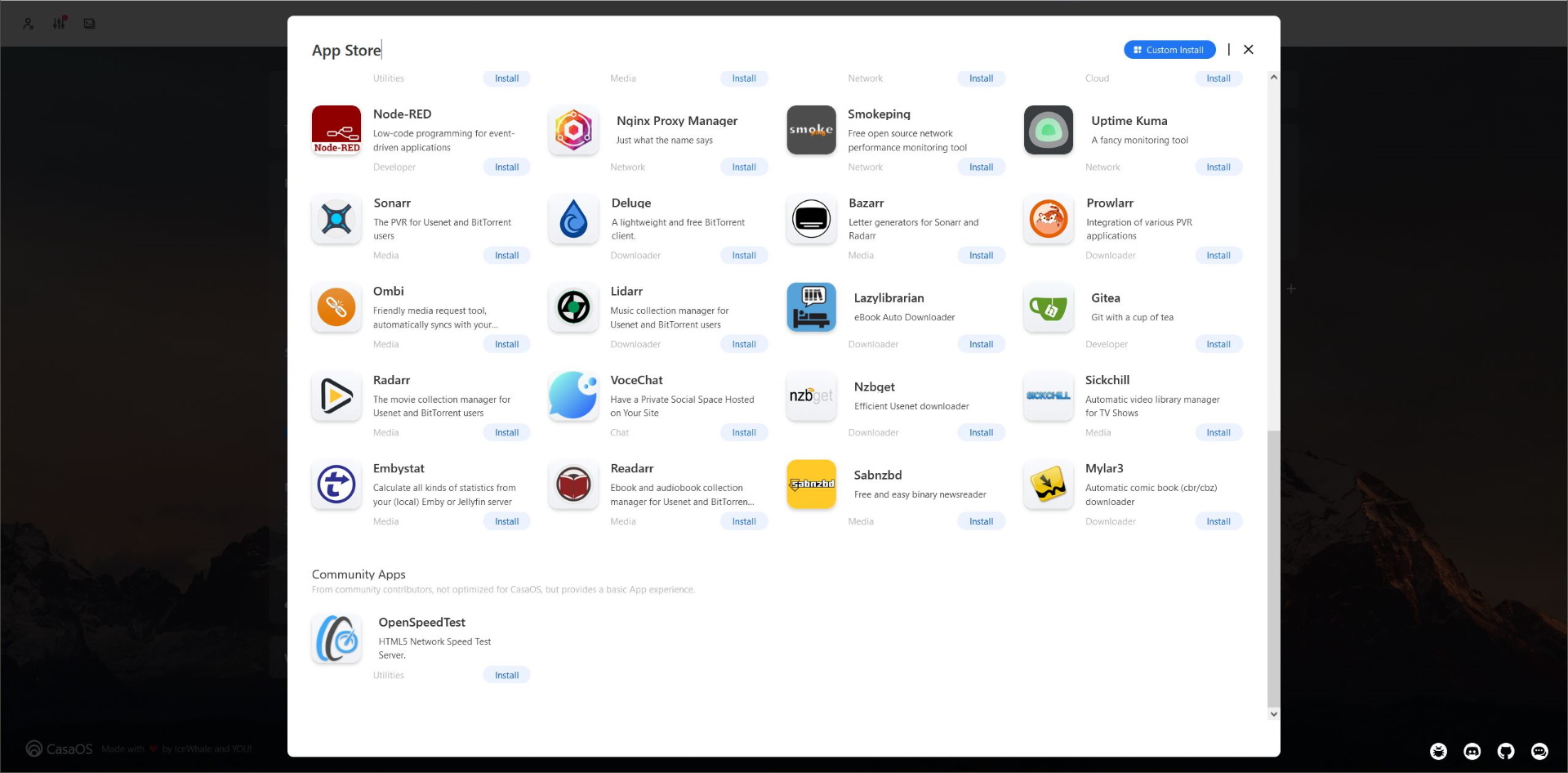 Il punto forte del software sviluppato dal produttore di Zimaboard, IceWhale, è che gestisce tutte le altre applicazioni nei container Docker. Tramite l'"App Store", è possibile installare nei container un gran numero di applicazioni preconfigurate con la semplice pressione di un pulsante, tra cui software noti come Jellyfin, Proxmox, NexCloud, pfsense, OpenNAS e molti altri.