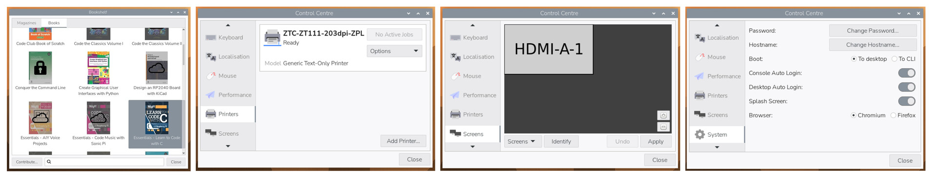 Inoltre, Trixie consolida le impostazioni di sistema in una nuova applicazione Control Centre, sostituendo così Aspetto, Mouse e Tastiera, Raspberry Pi Configurazione e Configurazione dello schermo. Meglio ancora, Control Centre supporta estensioni di terze parti e pagine di impostazioni personalizzate. Inoltre, la nuova versione del sistema operativo raggruppa i componenti dell'immagine desktop in meta-pacchetti per semplificare la conversione tra ambienti Lite e desktop.