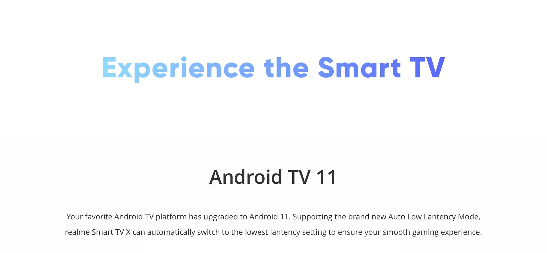 Il loro Dolby Atmos-altoparlanti migliorati sono stati anche confermati per venire in 2x2 configurazioni per unità Smart TV X Full HD, e sono valutati per il cosiddetto "Cinematic Surround" audio Realme ha anche sostenuto il "Premium Bezel-less Design" del TV X Full HD, con bordi che si riducono a soli 5.76mm