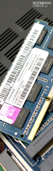 La metà bassa del case è composto da materiale sintetico opaco e dà un'impressione di alta qualità. Sono presenti varie aperture per la ventilazione e alcuni adesivi, oltre che un lungo pannello di servizio. Sotto questo è possibile trovare il disco rigido da 2.5 pollici e i 4 GB di RAM, divisi in due slot. Purtroppo gli altri componenti non sono facilmente accessibili.