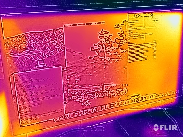 Inutile dire che le temperature superficiali non sono così importanti per i computer desktop e i display come lo sono per i portatili, ma possiamo dare il via libera anche in questo caso perché non si scalda molto. Il lato superiore del Mac Studio si riscalda a circa 36 °C (~97 °F) nello stress test, poiché il dissipatore di calore si trova direttamente sotto di esso. Registriamo circa 40 °C (~104 °F) direttamente all'uscita della ventola, il che significa che tutto rientra nei limiti di sicurezza. Anche lo Studio Display mostra un punto caldo sul retro, ma 30 °C (~86 °F) vanno assolutamente bene