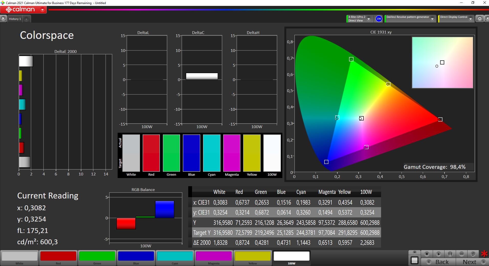 ΔE Greyscale Calman: 1.8 | ∀{0.09-98 Ø5}