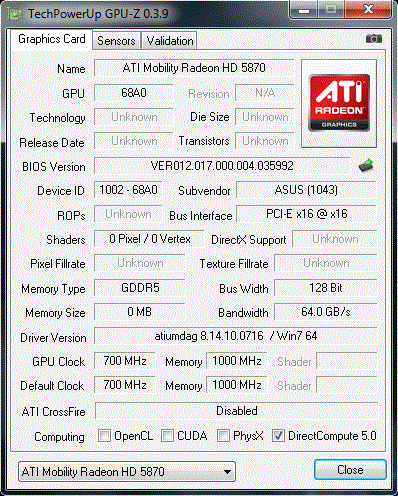 Nel test 3DMark ci interessava in particolare il paragone con la scheda di pari fascia Nvidia (che supporta però solo le DirectX 10), la GeForce GTX 280M. Nel test 3DMark05, la Radeon HD 5870 ha raggiunto 18396 punti, un po' meno della GeForce GTX 280M con i suoi 18414 punti. I risultati in 3DMark06 sono simili - mentre la HD 5870 ha raggiunto 12356 punti, la GTX 280M guadagna 12569 punti. Ma l'ultima versione del 3DMark, il 3DMark Vantage, le parti si sono invertite con la HD 5870 che detiene il comando nei punteggi per GPU (in cui ciò che realmente conta è la potenza grafica pura), con 7519 a 6328.