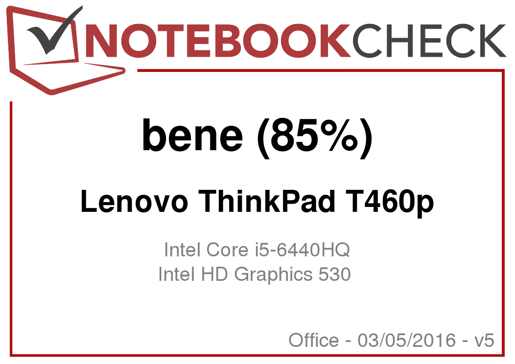 Alcuni di questi punti sono causati dal fatto che il design si basa sulla precedente generazione. E' un peccato, in quanto il portatile offre molti aspetti positivi. Questi includono il case molto robusto, l'eccellente tastiera e lo schermo decente, che è da criticare solo per la limitata copertura della gamma di colore. Alcuni dei citati problemi possono essere evitati con altre configurazioni (SSD, più RAM), ma nel complesso, siamo delusi dal ThinkPad T460p.