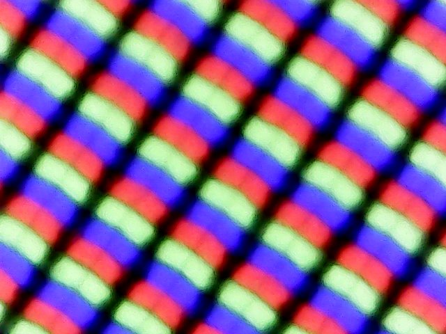 Usiamo un fotospettrometro X-Rite i1Pro2 con un software professionale CalMAN per ulteriori misurazioni. La luminosità media è decente con 313 nits, ma la distribuzione della luminosità è solo media con l'83%. Il valore del nero (luminosità dei pixels neri) è di 0.27 cd/m², un valore decente per un pannello IPS e che supera molti altri concorrenti. Solo alcuni pannelli TN ed OLED fanno di meglio a riguardo.