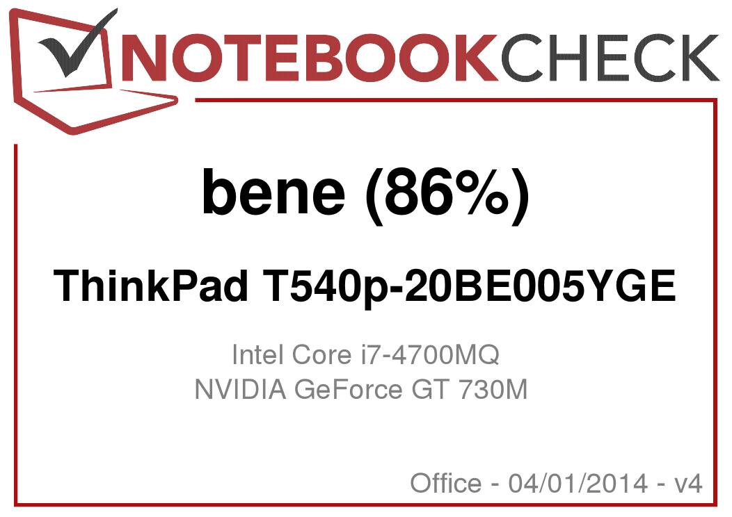 Nel complesso il T540p ha prestazioni simili ad altri portatili con CPU identica. Intel offre anche una versione più veloce come il Core i7-4800MQ, che, ad esempio, lavora con il Dell Latitude E6540, ma il minimo vantaggio di prestazioni non giustifica il costo maggiore. Anche il 4700MQ è – con un software ottimizzato per multiple cores – veloce quasi il doppio rispetto ai processori dual-core più veloci sul mercato.