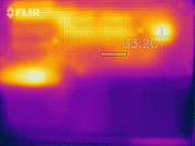 (-) La temperatura massima sul lato superiore è di 51.9 °C / 125 F, rispetto alla media di 34.3 °C / 94 F, che varia da 21.2 a 62.5 °C per questa classe Office.