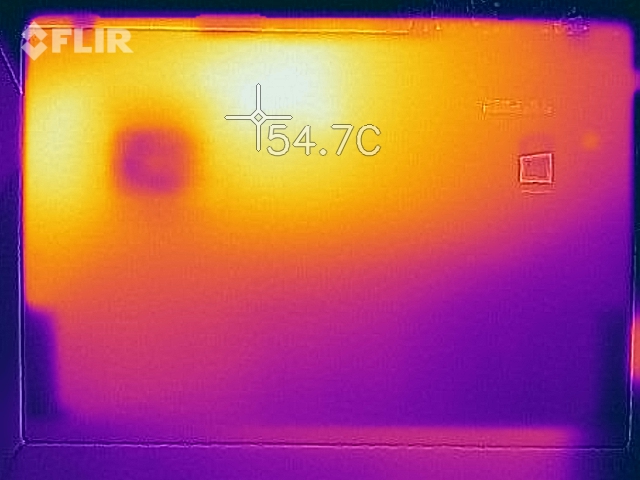 (-) La temperatura massima sul lato superiore è di 52.6 °C / 127 F, rispetto alla media di 34.3 °C / 94 F, che varia da 21.2 a 62.5 °C per questa classe Office.