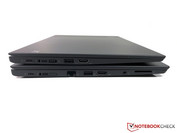 Il lettore microSD si trova sull'estremità posteriore dell'unità base ed ospita anche una scheda micro-SIM (utilizzabili contemporaneamente). Avrete bisogno di qualcosa di affilato o di un tool SIM per aprire lo slot, e la cover deve essere richiusa. Le prestazioni non danno problemi, abbiamo rilevato oltre 220 MB/s con la nostra scheda di riferimento Toshiba (Exceria Pro M501 64 GB UHS-II); e le immagini sono copiate ad una eccellente velocità di 191 MB/s. Valori superiori ai concorrenti, incluso il T480s con il suo lettore SD full-size.