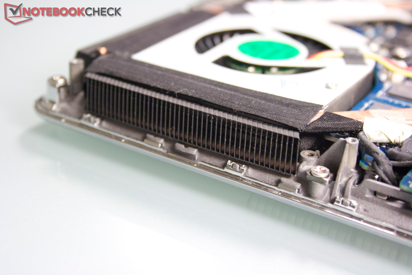 Nel complesso il sistema di raffreddamento potrebbe girare ai limiti con la CPU da 35W CPU ed i 17W TDP della scheda grafica GT520M. In estate potrebbe essere un problema. In uno scenario di utilizzo realistico non ci dovrebbero essere particolari problemi o limiti per quanto riguarda il throttling. Nel test Cinebench benchmarking (R10 single core) la banda Turbo della CPU 2640M ha mostrato tutto il suo potenziale a 3.3 - 3.4 GHz per esempio.