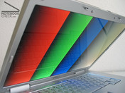 L'illuminazione con un valore del 71.5 % è piuttosto sotto la media - l'angolo in alto a sinistra (nel nostro portatile di test) era veramente poco illuminato.