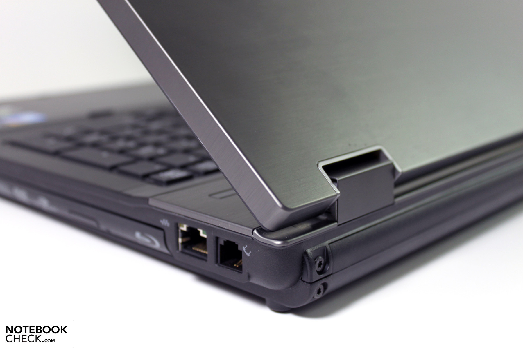 Ancora una volta l'Elitebook non può essere rimproverato per quanto riguarda le dotazioni di interfacce. Ma dobbiamo giudicare il posizionamento in modo più severo. Come si vede bene dalle immagini, la maggioranza delle porte a destra ed a sinistra si trova piuttosto lontano dalla parte anteriore – in particolare le USB sulla destra. Potreste spesso essere infastiditi dai cavi sui lati del portatile quando lo usate senza una docking station.