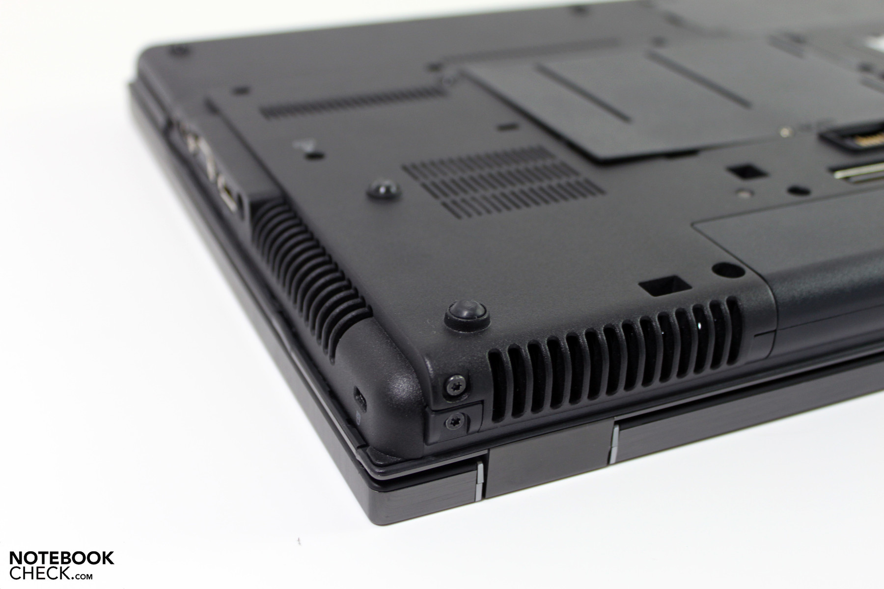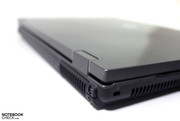 Questo ci porta al successivo criterio di valutazione: la stabilità del case. Ancora una volta, cerchiamo nella pratica motivi lamentela senza successo. Sia l'unità base che il display restano indifferenti alle pressioni. Il display si mostra molto resistente anche alle torsioni, il che non sorprende considerato lo spessore di 12 millimetri. Con un peso di 3820 grammi, possiamo sollevare il portatile soltanto se lo afferriamo dell'estremità frontale con una presa molto stretta. L'unità base non sembra avere reazioni – nessuno scricchiolio, o segno di torsione.