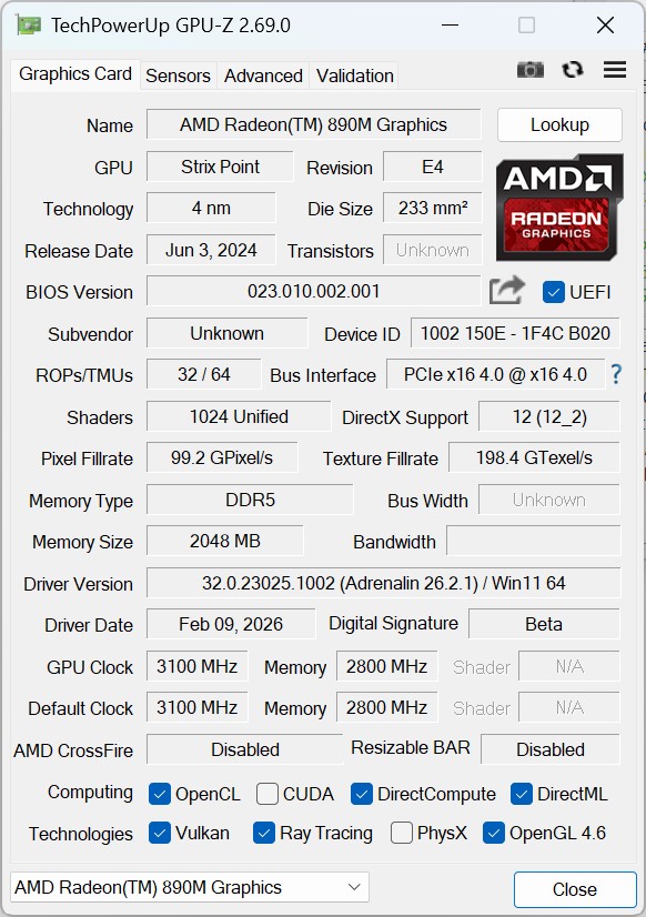 | Geekom A9 Max, AI 9 HX 370 (v6.92.6600) | |