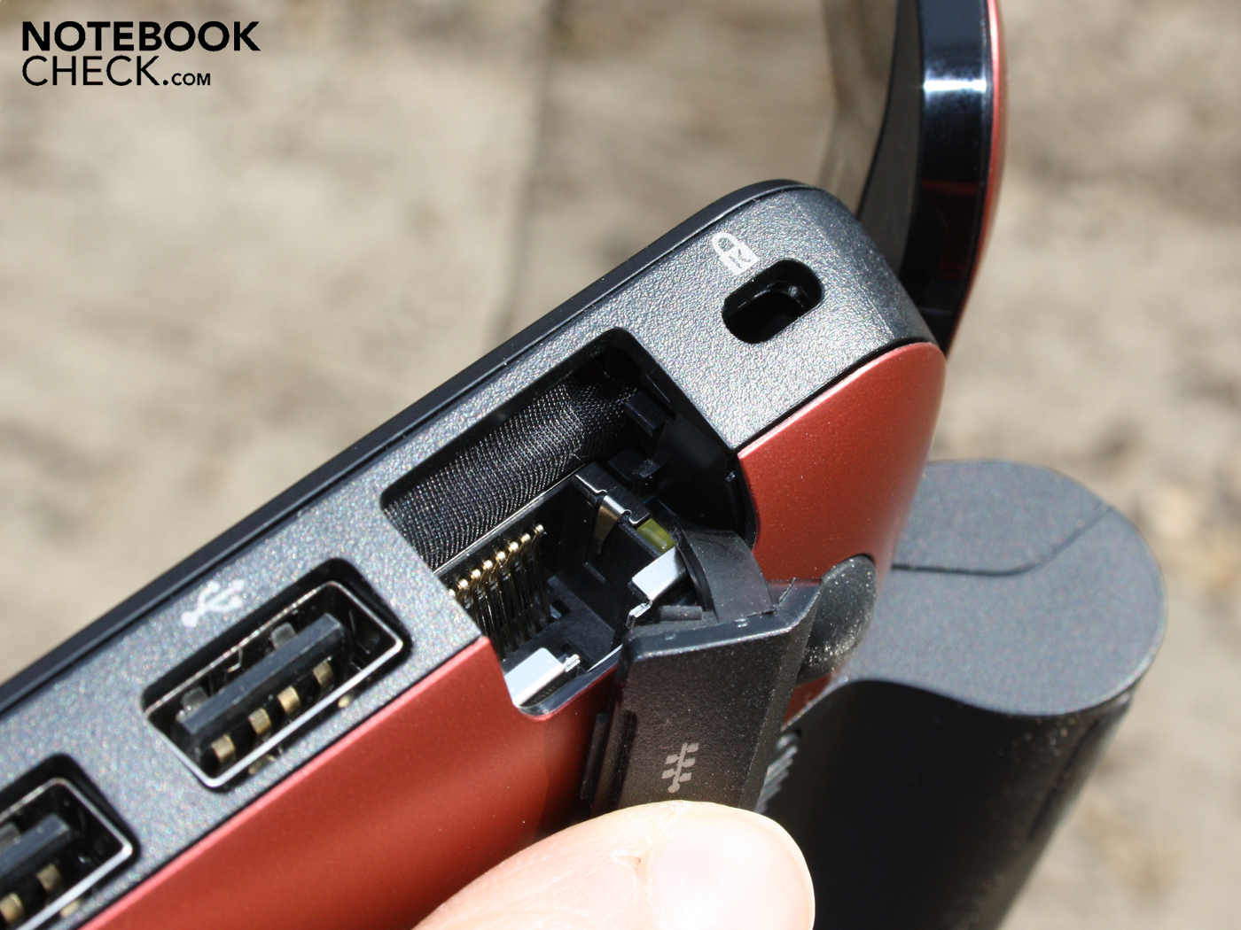 Non è possibile paragonare la connettività di un netbook con quella di un portatile multimediale. A destra, due porte USB, una RJ45 per il cavo di rete. Sullo stesso lato una card reader, che può gestire anche schede xD cards, vicino al lato frontale. Le porte USB non hanno funzione di ricarica se il netbook è inattivo (Sleep & charge). Per coloro che temono i furti, è possibile collegare il 210 Mini con un cavo Kensington.