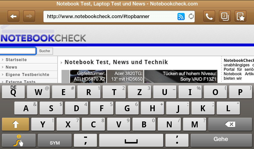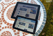 Ora veniamo ad alcuni aspetti specifici dello schermo, che misura 7 pollici (17.8 cm) diagonalmente ed ha una risoluzione di 1024x600 pixels (Dell Streak 800x480, iPad 1024x768 pixels). L'elevata densità dot di 170 dpi sembra abbastanza buona mentre navighiamo il web. La maggioranza dei siti web, tuttavia, non sono mostrati con dettagli adeguati ed in modo da poter leggere tutto il testo senza dover effettuare lo zoom.