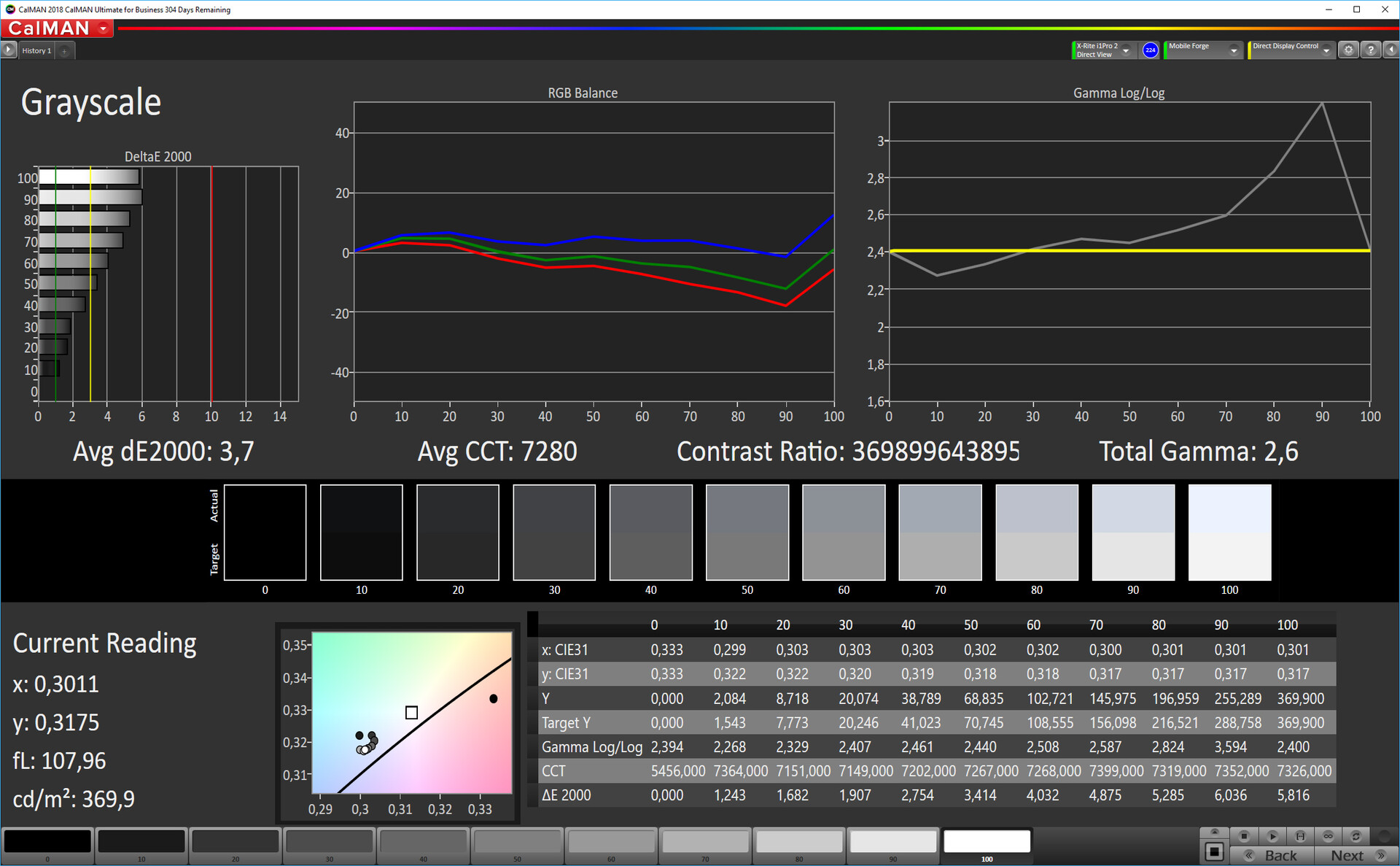 ΔE Greyscale Calman: 1.1 | ∀{0.09-98 Ø5}