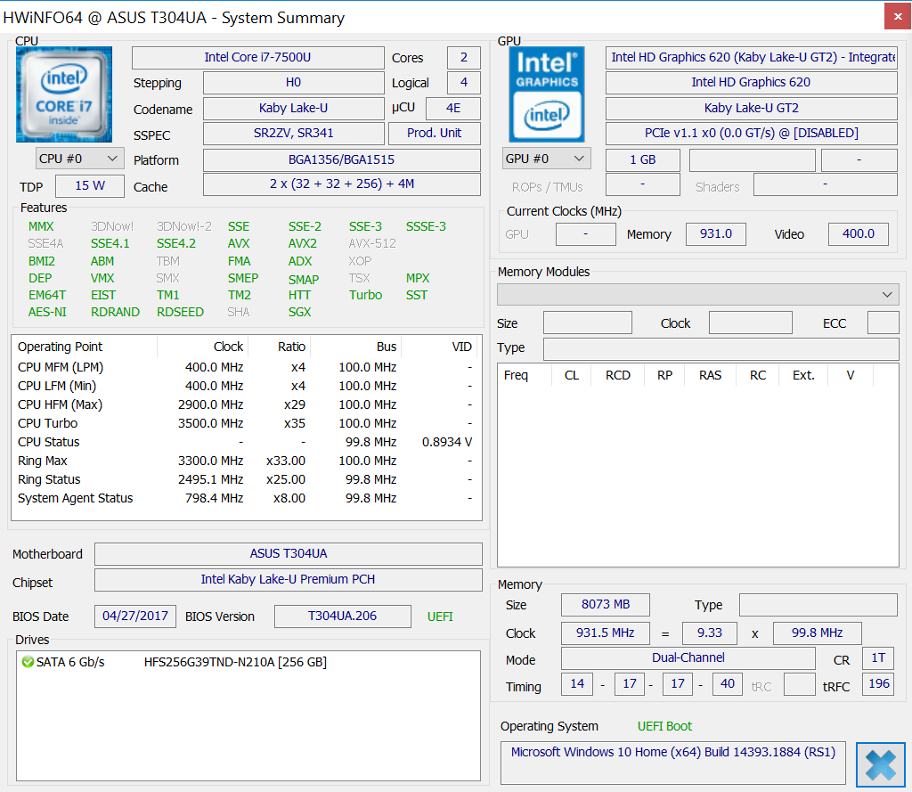 | Asus Transformer 4 Pro (i7-7500U, HD620) | |