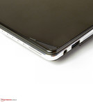 La presenza del touchscreen è opinabile. La superficie riflettente, infatti, rende praticamente impossibile l'uso all'esterno e contraddice la mobilità assoluta che dovrebbe offrire il notebook. Fortunatamente, Fujitsu offre anche schermi opachi per i suoi Lifebook. Sfortunatamente, la CPU e la GPU del Lifebook non possono sfruttare completamente le rispettive prestazioni massime. Il sistema di raffreddamento non sembra essere correttamente dimensionato. Per questo, i potenziali acquirenti dovrebbero considerare modelli più economici dotati di Core i5-4200U se tale processore potrebbe essere sufficiente all'utilizzo atteso.