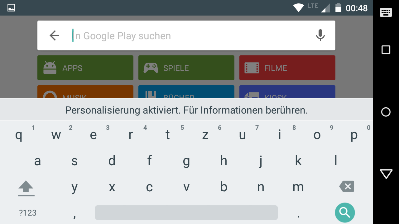 Some modifications have been made to the preloaded Google keyboard, which now comes in the Material Design. The most important improvement in the new version is input via swiping. The row with the three suggested words, which used to show the button for voice inputs when searching Internet or browsing is no longer shown, however, it does appear when doing "real" text inputting, such as in a word processing app or writing emails.