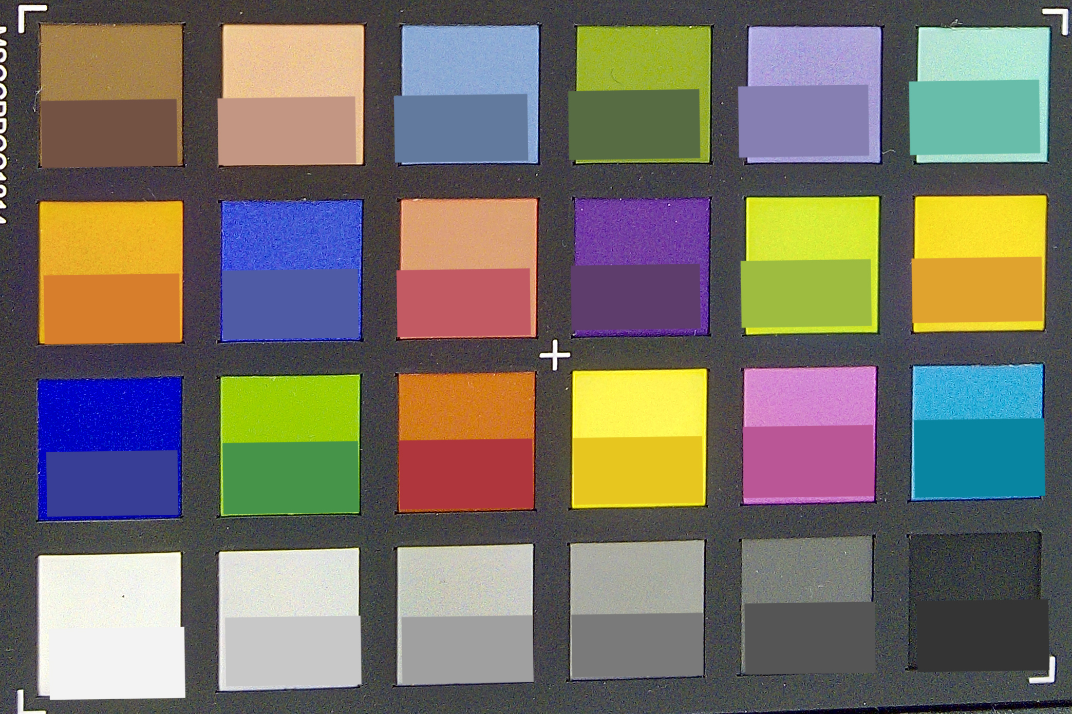 | Colorchecker dE 2000 * | 11.9 | 6.8 43% | 9.38 21% | 6.6 45% | 6.1 49% |