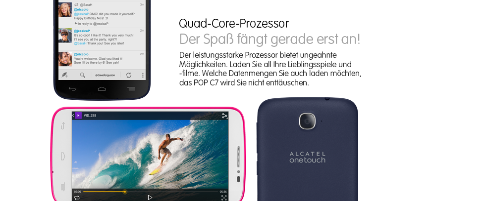 Con lo smartphone One Touch Pop C7, Alcatel cerca di introdursi nel segmento entry-level. Ciò dovrebbe essere possibile grazie a un SoC quad-core, un display da 5 pollici e un'ottima qualità dell'assemblaggio, ma sono i dettagli quelli che contano. Sfortunatamente, il display ha una risoluzione molto bassa (854 x 480 pixel) e può essere utilizzato solo con un massimo di due dita. Inoltre, gli angoli di visualizzazione sono stretti e i frequenti crash durante l'utilizzo di app a intenso sfruttamento della CPU sono fastidiosi e hanno causato il punteggio ridotto. Le prestazioni e la capacità della memoria flash (4 GB) sono scarse, e il sistema ne soffre in diversi aspetti. I pro riguardano la batteria sostituibile, la memoria espandibile e il supporto dual SIM.