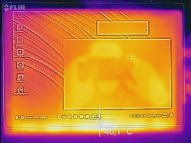 Il settaggio delle temperature Microsoft e le regolazioni sono conservative. Mentre il picco per la CPU è stato di 80 °C (~176 °F), si è fermato a 63 °C e 57 °C (~145 e ~135 °F) nello stress di CPU e GPU rispettivamente. Questo significa che le temperature del case sono più che tollerabili e non ci sono punti che superano i 40 °C (~104 °F).