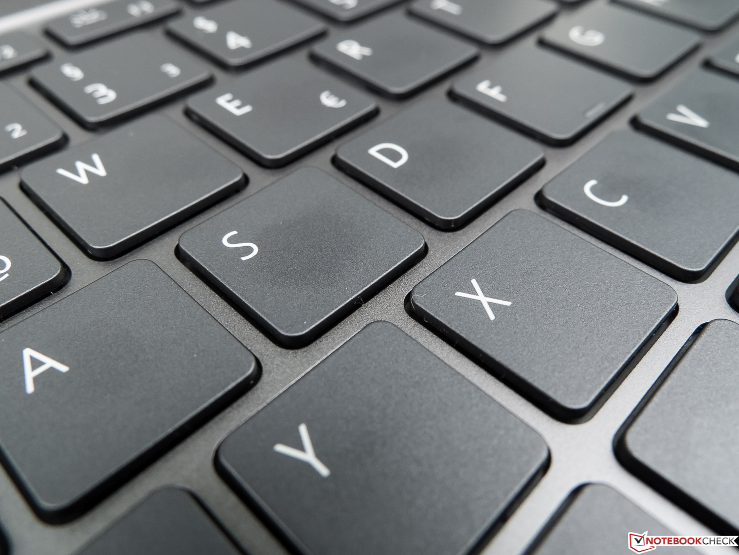La tastiera resiste abbastanza ai tentativi di pressione. L'illuminazione a due livelli migliora il contrasto delle etichette in tutte le condizioni di luce. I tasti Fn e Caps Lock hanno un loro LED. Sebbene i tasti più grandi come Return, siano un po' rumorosi, nel complesso la rumorosità della digitazione è contenuta.